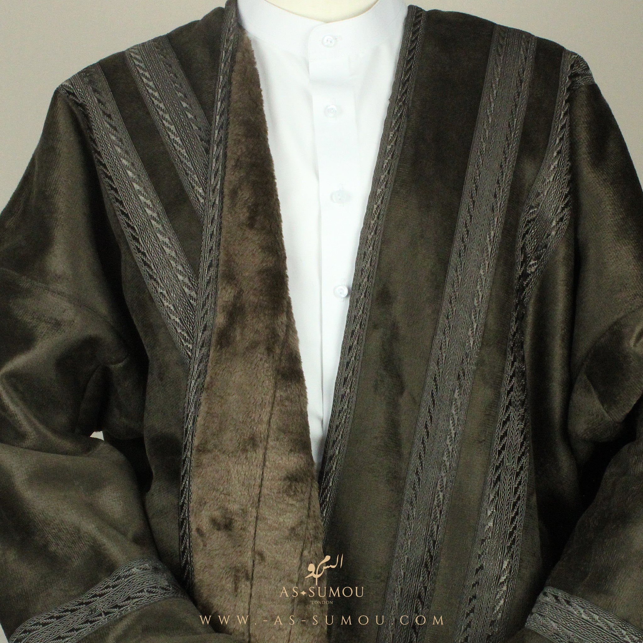 Embrace timeless elegance and warmth—order your Khaki Arabian Winter Farwa Bisht today.
