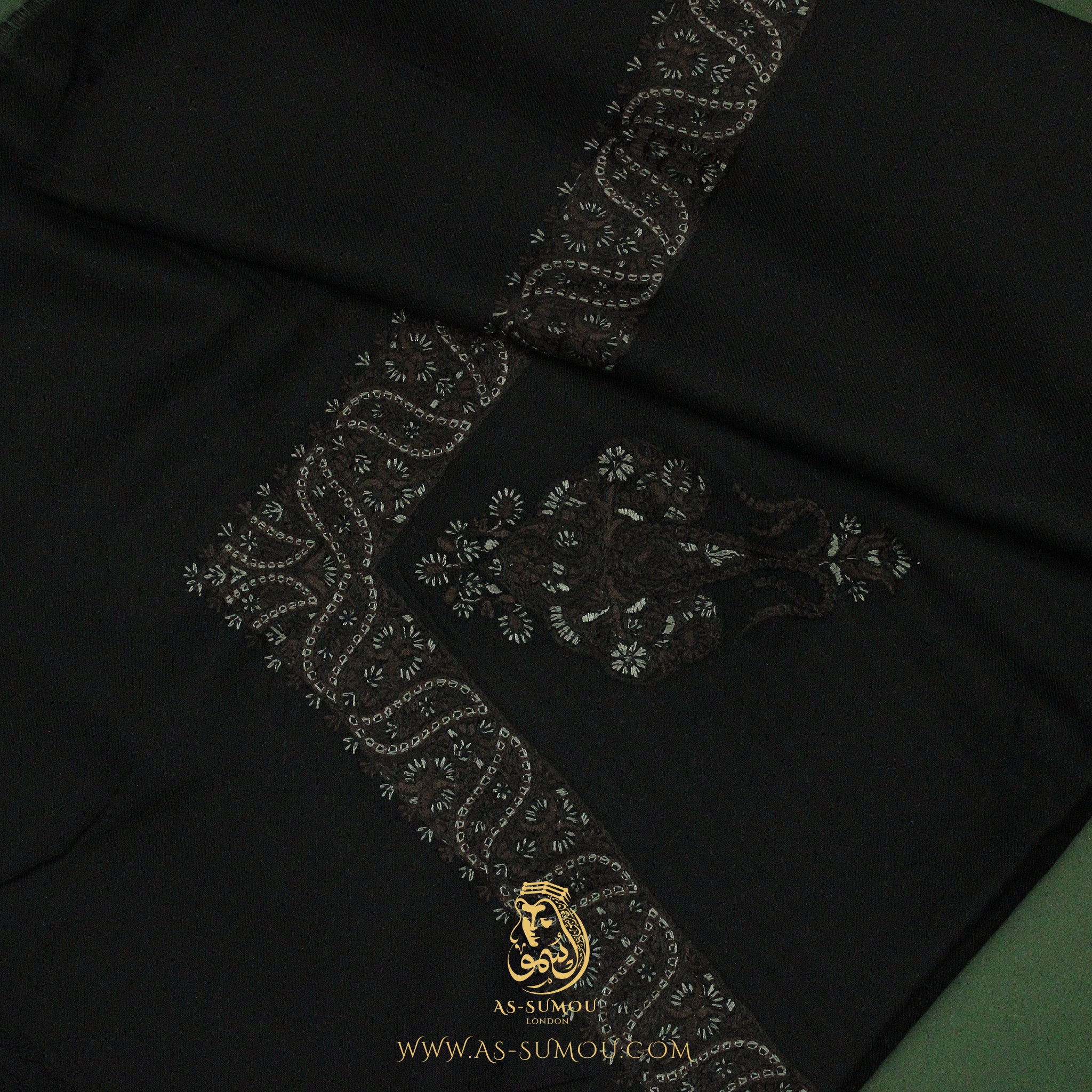 Introducing our Black Embroidered Yemeni Shemagh headscarf, also known as ghutra, massar, or mashada—a masterpiece adorned with a rare, wide embroidery pattern that sets it apart from traditional designs.