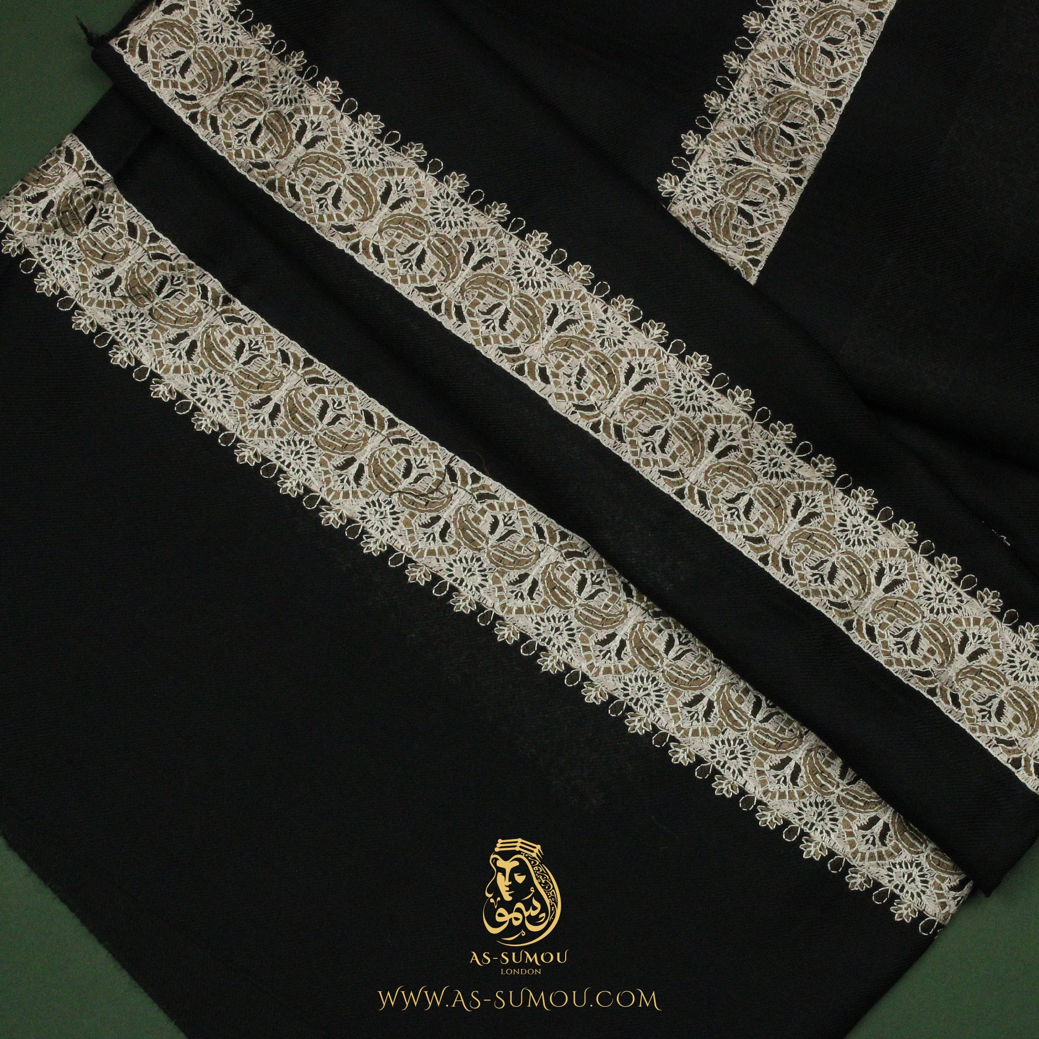 Introducing our Black Embroidered Yemeni Shemagh headscarf, also known as ghutra, massar, or mashada—a masterpiece adorned with a rare, wide embroidery pattern that sets it apart from traditional designs.