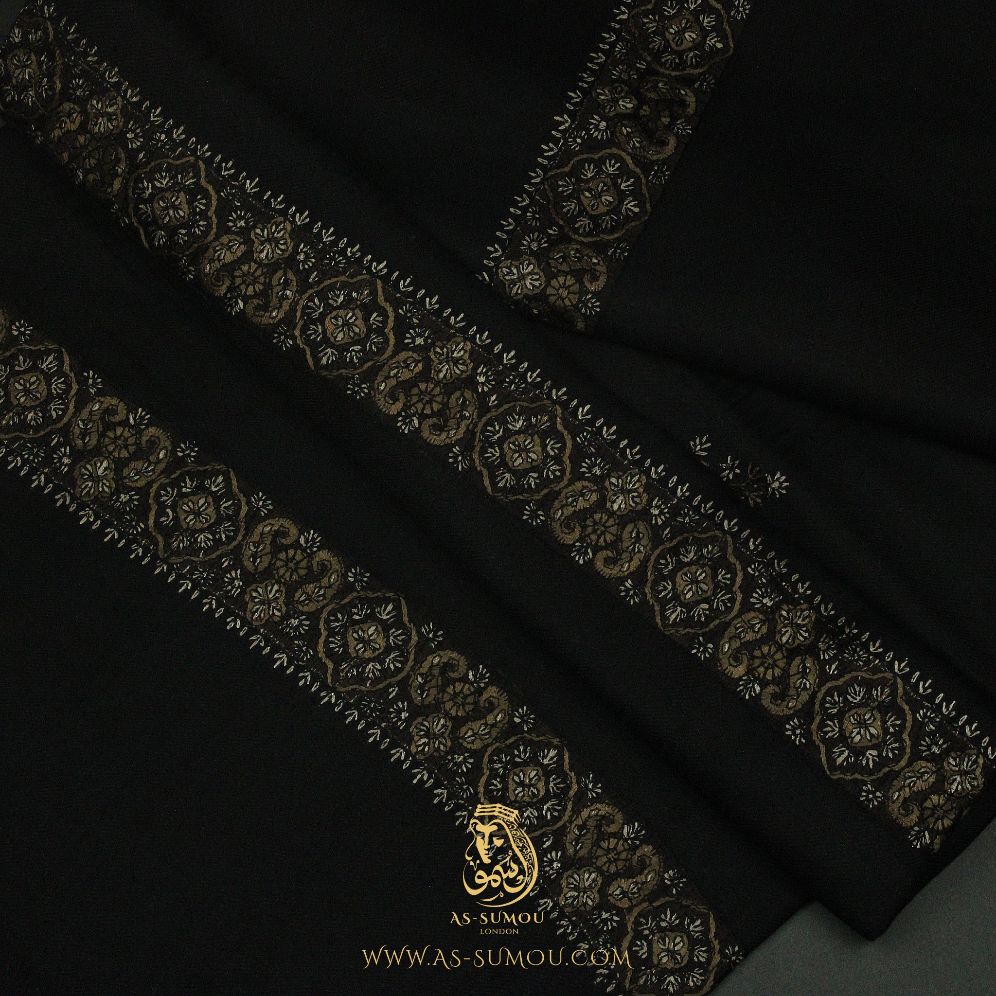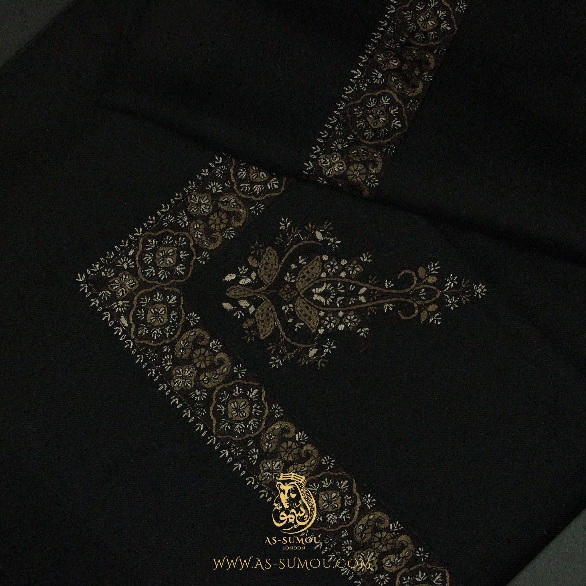 Introducing our Black Embroidered Yemeni Shemagh headscarf, also known as ghutra, massar, or mashada—a masterpiece adorned with a rare, wide embroidery pattern that sets it apart from traditional designs.