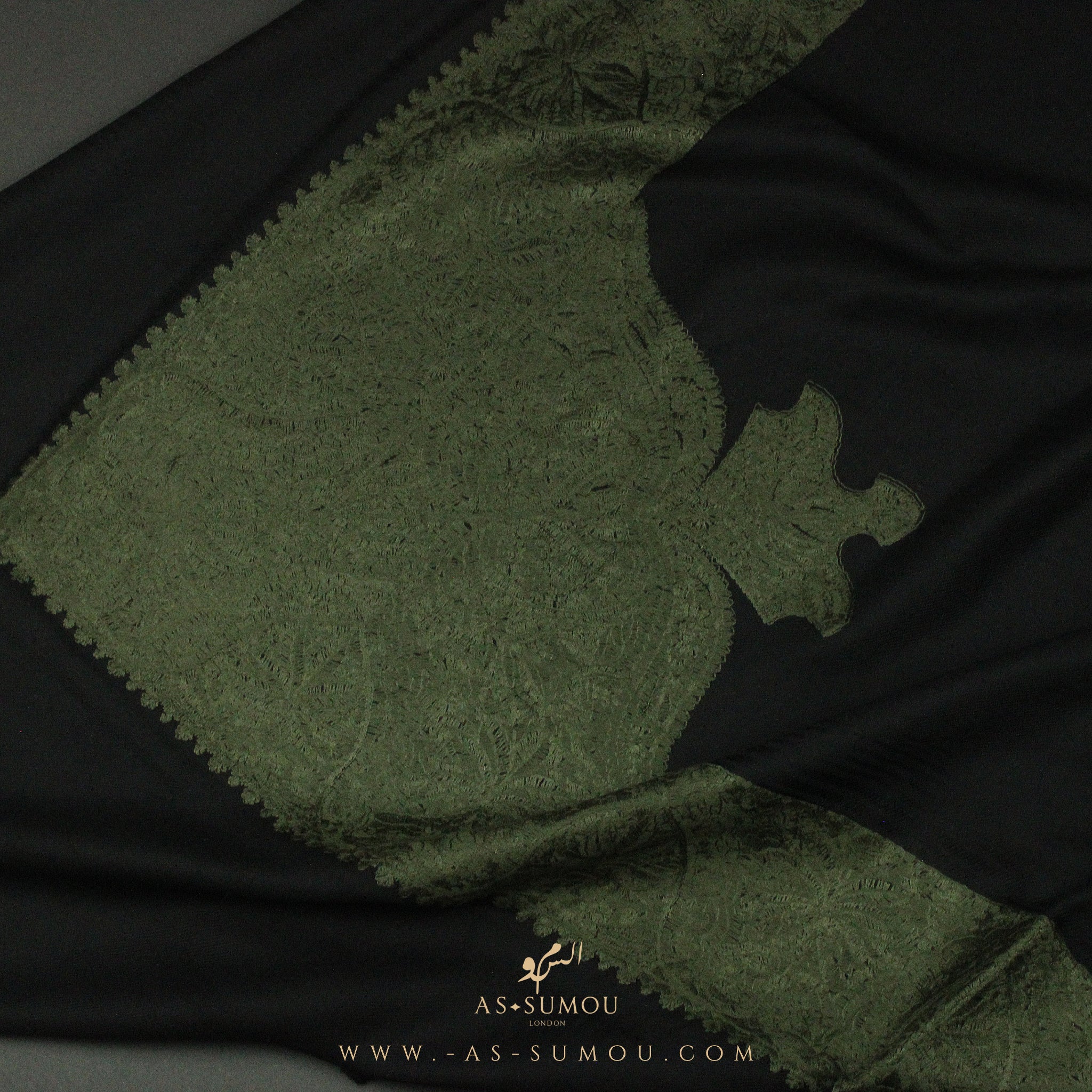 Make a bold statement with the Black Yemeni Shemagh. Its unique and intricate wide embroidery brings a sense of rare craftsmanship, lending a striking elegance to any outfit. This headscarf is more than an accessory; it’s a celebration of heritage and refined style, bridging tradition and modern fashion effortlessly.