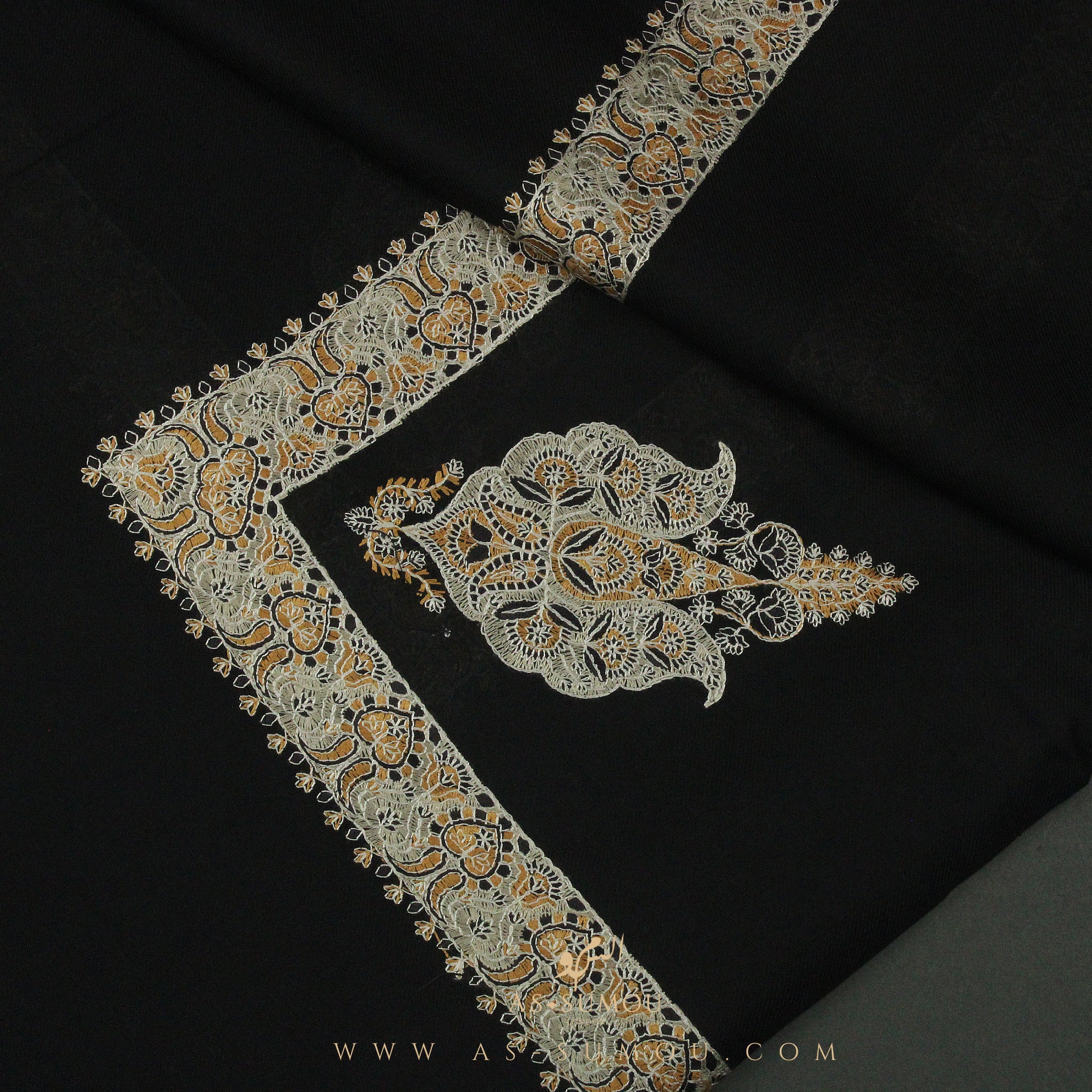 Introducing our Black Embroidered Yemeni Shemagh headscarf, also known as ghutra, massar, or mashada—a masterpiece adorned with a rare, wide embroidery pattern that sets it apart from traditional designs.