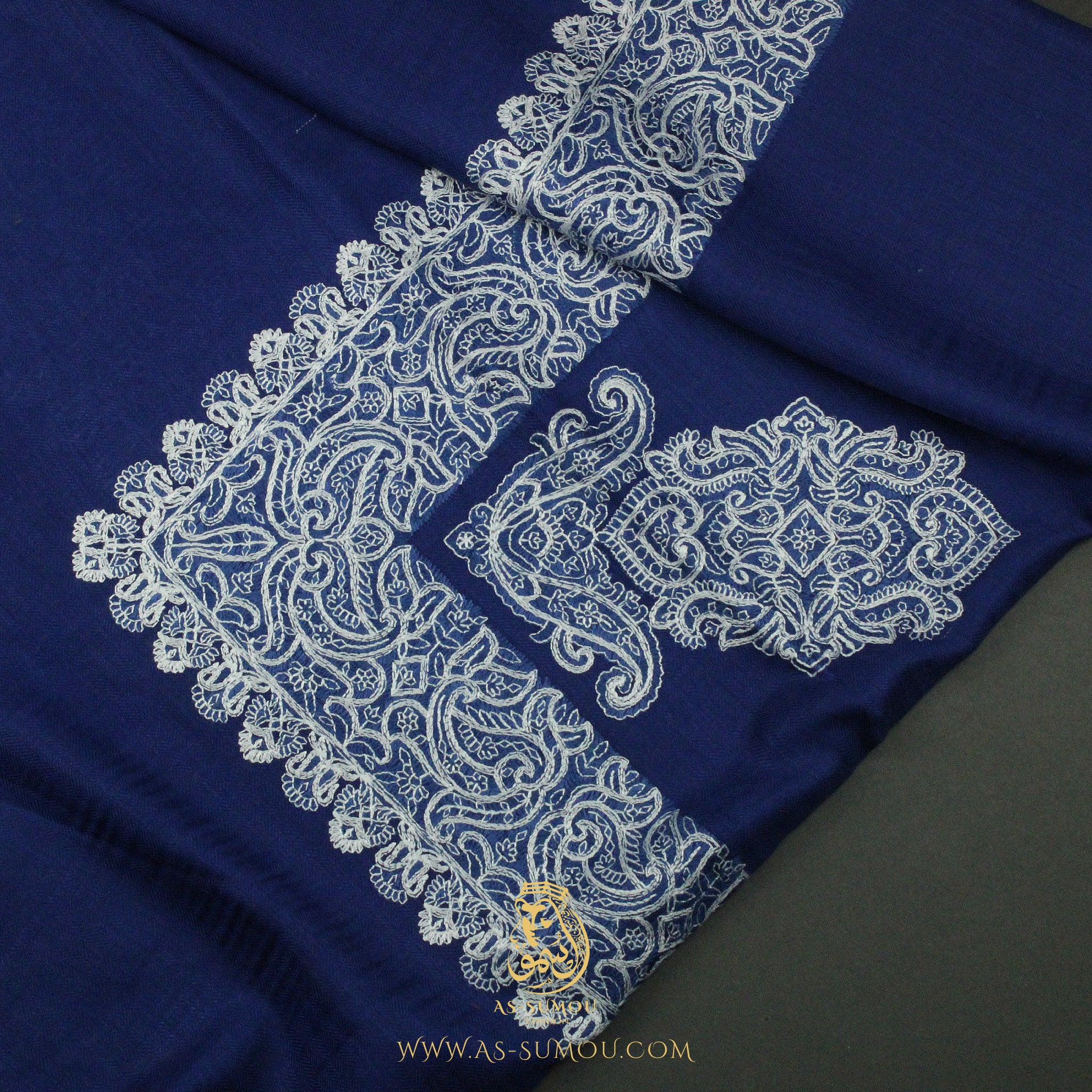 Blue colour Omani Massar, crafted with meticulous attention to detail. This elegant headscarf is special for its rare combination of two distinct designs woven into the same Massar, making it an uncommon and eye-catching choice for those who appreciate fine Arabian attire.