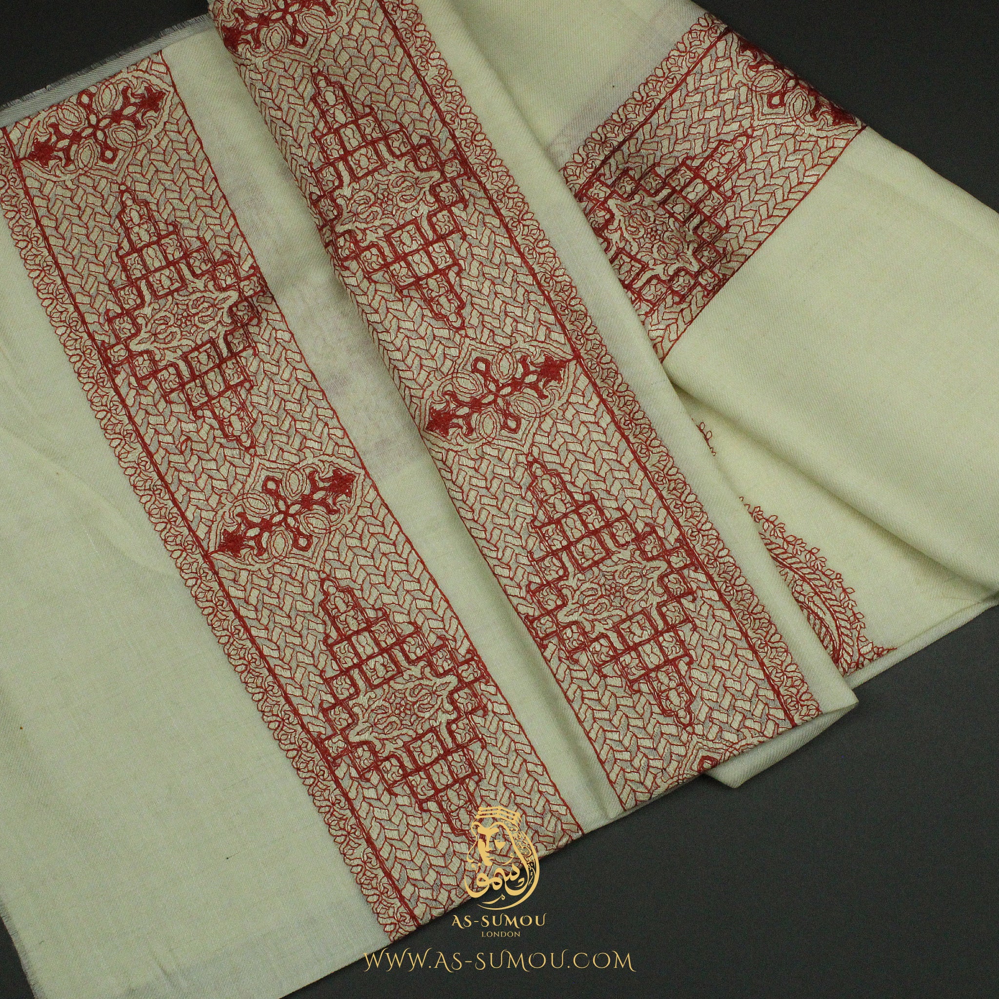 Embroidered with different patterns within the same fabric, our Omani Massar stands out as a rare gem. Its exclusive design makes it a thoughtful and distinctive gift that cannot be replicated.