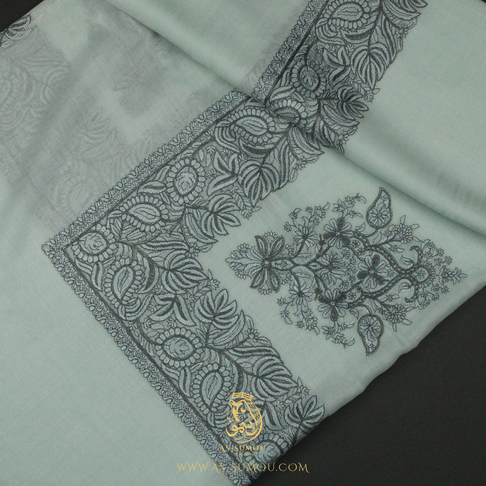 A truly unique statement piece this mint colour Omani Massar. Crafted with meticulous attention to detail, this headscarf boasts a one-of-a-kind design that is not just an accessory but a collectible piece of wearable art.