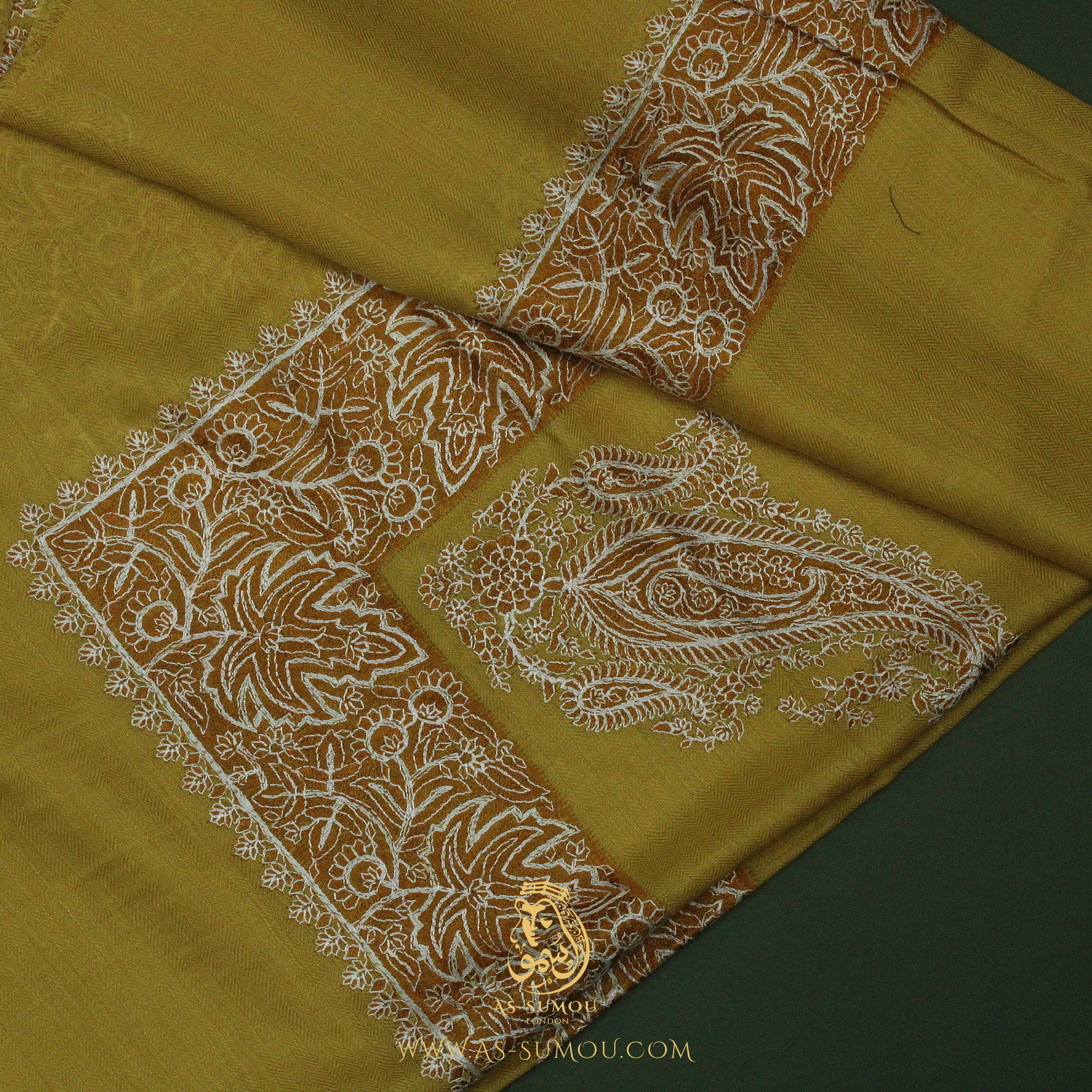 A truly unique statement piece this mustard colour Omani Massar. Crafted with meticulous attention to detail, this headscarf boasts a one-of-a-kind design that is not just an accessory but a collectible piece of wearable art.