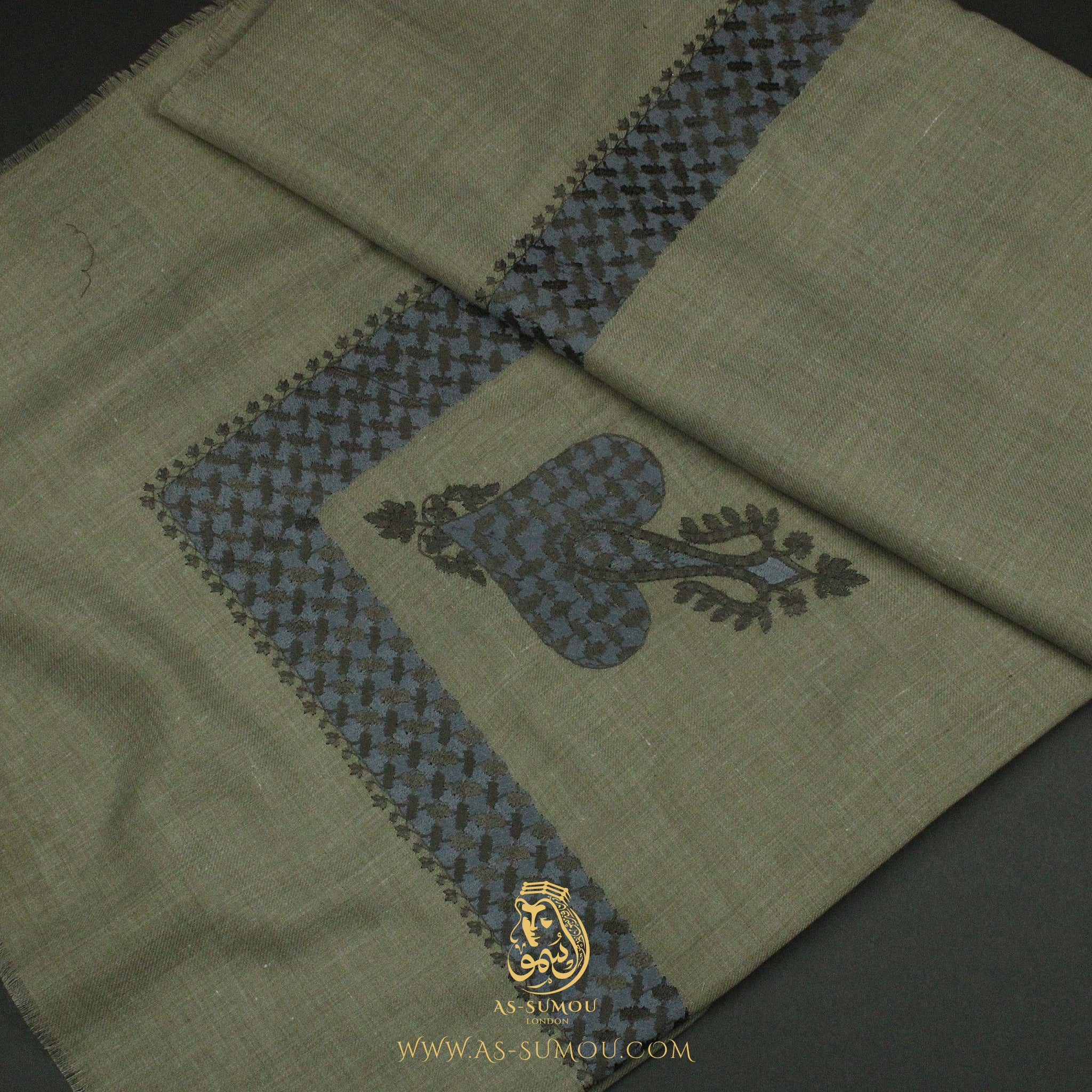 Introducing our olive colour embroidered Yemeni shemagh headscarf, also known as ghutra, massar, or mashada in different regions. This Yemeni shemagh scarf is inspired by the iconic checkered pattern found on the traditional keffiyeh to add a touch of elegance to your ensemble, making a bold fashion statement.