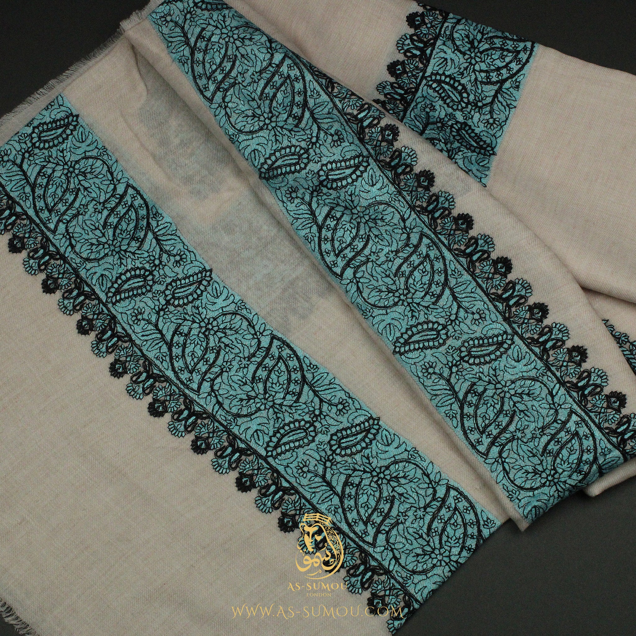 A truly unique statement piece this taupe colour Omani Massar. Crafted with meticulous attention to detail, this headscarf boasts a one-of-a-kind design that is not just an accessory but a collectible piece of wearable art.