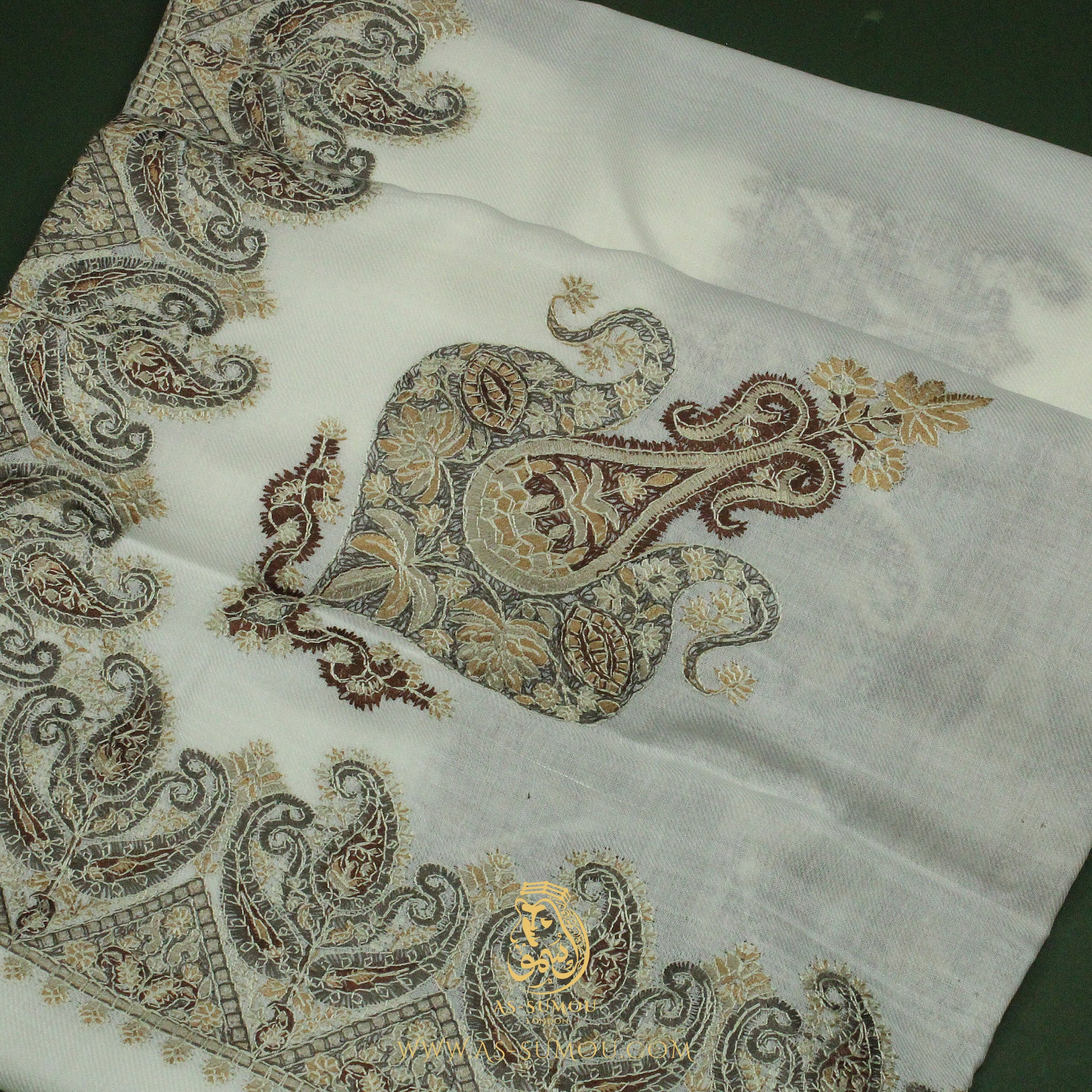 A truly unique statement piece this white colour Omani Massar. Crafted with meticulous attention to detail, this headscarf is not just an accessory but a collectible piece of wearable art.