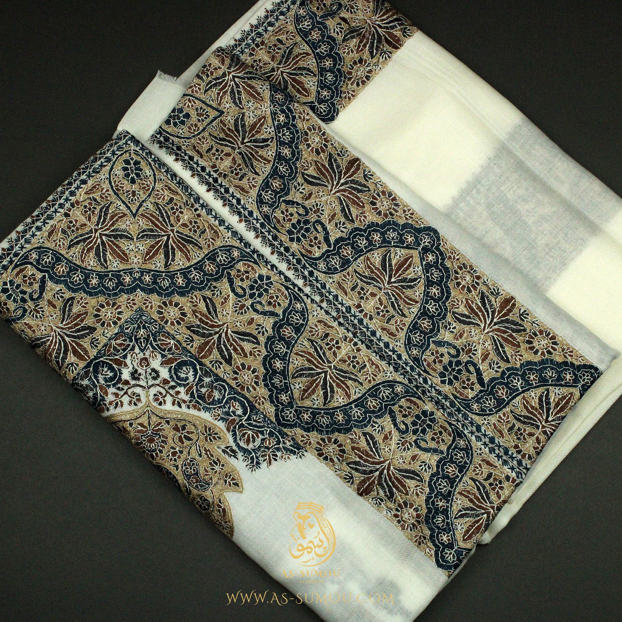 Embroidered with different patterns within the same fabric, our Omani Massar stands out as a rare gem. Its exclusive design makes it a thoughtful and distinctive gift that cannot be replicated.